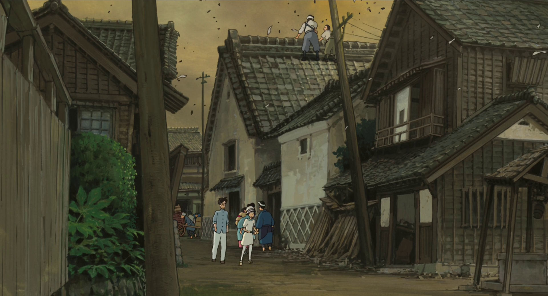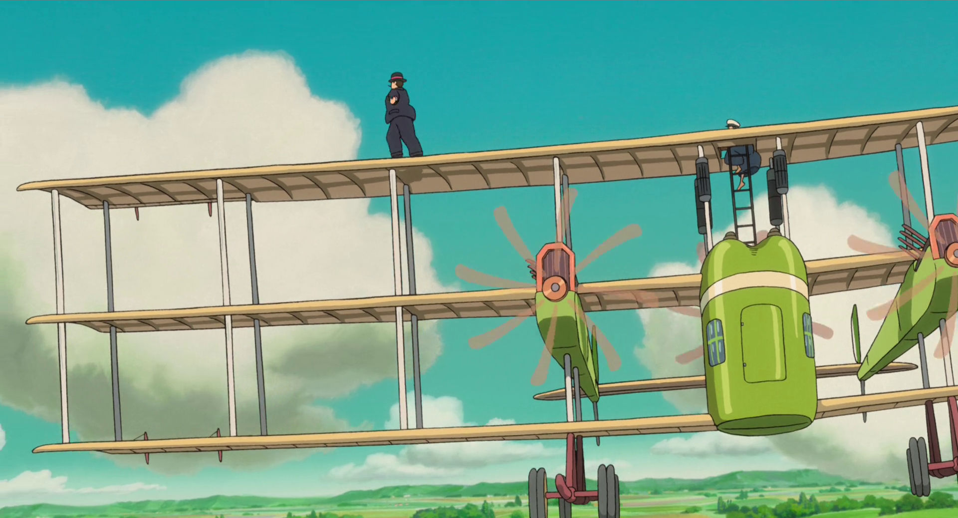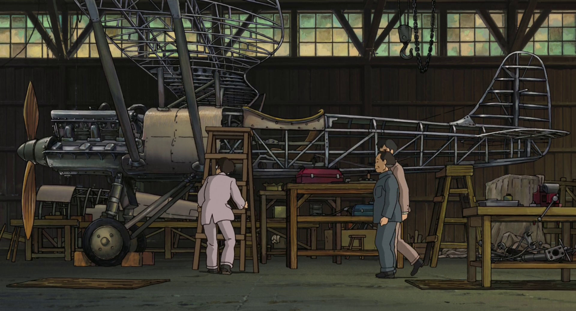 Le grand séisme de Kantō du 1er septembre 1923 constitue la première séquence majeure du film. Jirō, alors étudiant à Tokyo, sauve une jeune fille, Nahoko, et sa gouvernante lors de l’effondrement des bâtiments. Cette rencontre fugace marquera toute sa vie. Diplômé, Jirō entre chez Mitsubishi Heavy Industries en 1927. Il travaille obsessionnellement à la conception d’avions, subit des échecs techniques, voyage en Allemagne pour étudier les avancées de Junkers, témoin des prémices du nazisme sans en saisir la portée. En 1935, il retrouve Nahoko dans un sanatorium de montagne. Elle souffre de tuberculose, maladie alors incurable. Ils tombent amoureux, se marient malgré la maladie. Nahoko quitte le sanatorium contre l’avis médical pour vivre auprès de Jirō pendant qu’il achève la conception du Zero. Elle mourra peu après, sacrifice ultime pour permettre à son mari de réaliser son rêve.