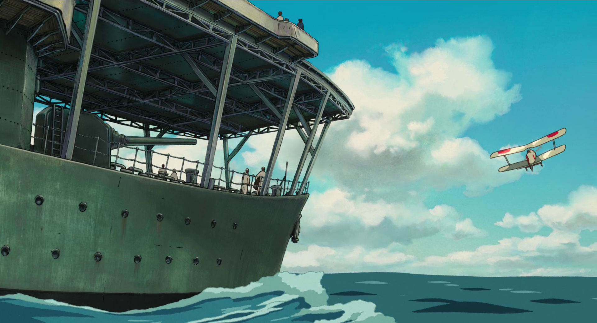 Effectivement, le film évite soigneusement toute célébration militariste. Aucune scène ne montre le Zero en combat, aucun pilote ne tire sur un ennemi, aucune victoire militaire n’est représentée. Le film s’achève la veille de l’attaque de Pearl Harbor (7 décembre 1941), éludant ainsi toute la période guerrière. Le dernier plan montre les Zero détruits, aucun n’étant revenu, constat d’échec plutôt que de triomphe. Miyazaki insère également des indices critiques : un espion allemand (doublé par Werner Herzog en version anglaise) évoque la montée du nazisme, la police secrète japonaise (Tokkō) surveille et réprime, signe de la dictature croissante.