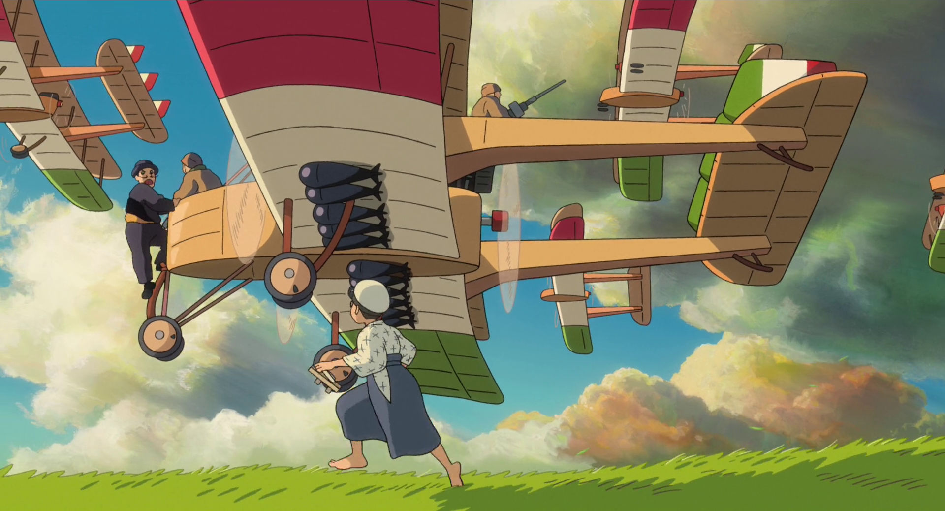 Le film se clôt sur un dernier rêve : Caproni accueille Jirō dans un paysage édenique. Des dizaines de Zero traversent le ciel. Caproni demande : « Ton avion est-il revenu ? » Jirō constate qu’aucun n’est revenu, tous détruits à la guerre. Nahoko apparaît brièvement, rayonnante, puis s’éloigne en disant : « Tu dois vivre. » Fin énigmatique, mélancolique, qui refuse toute conclusion morale simple.