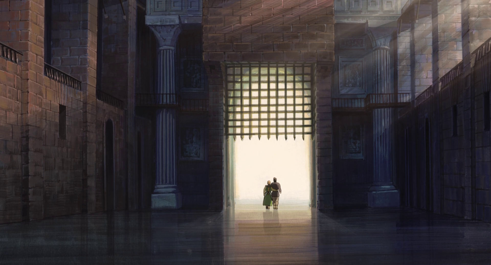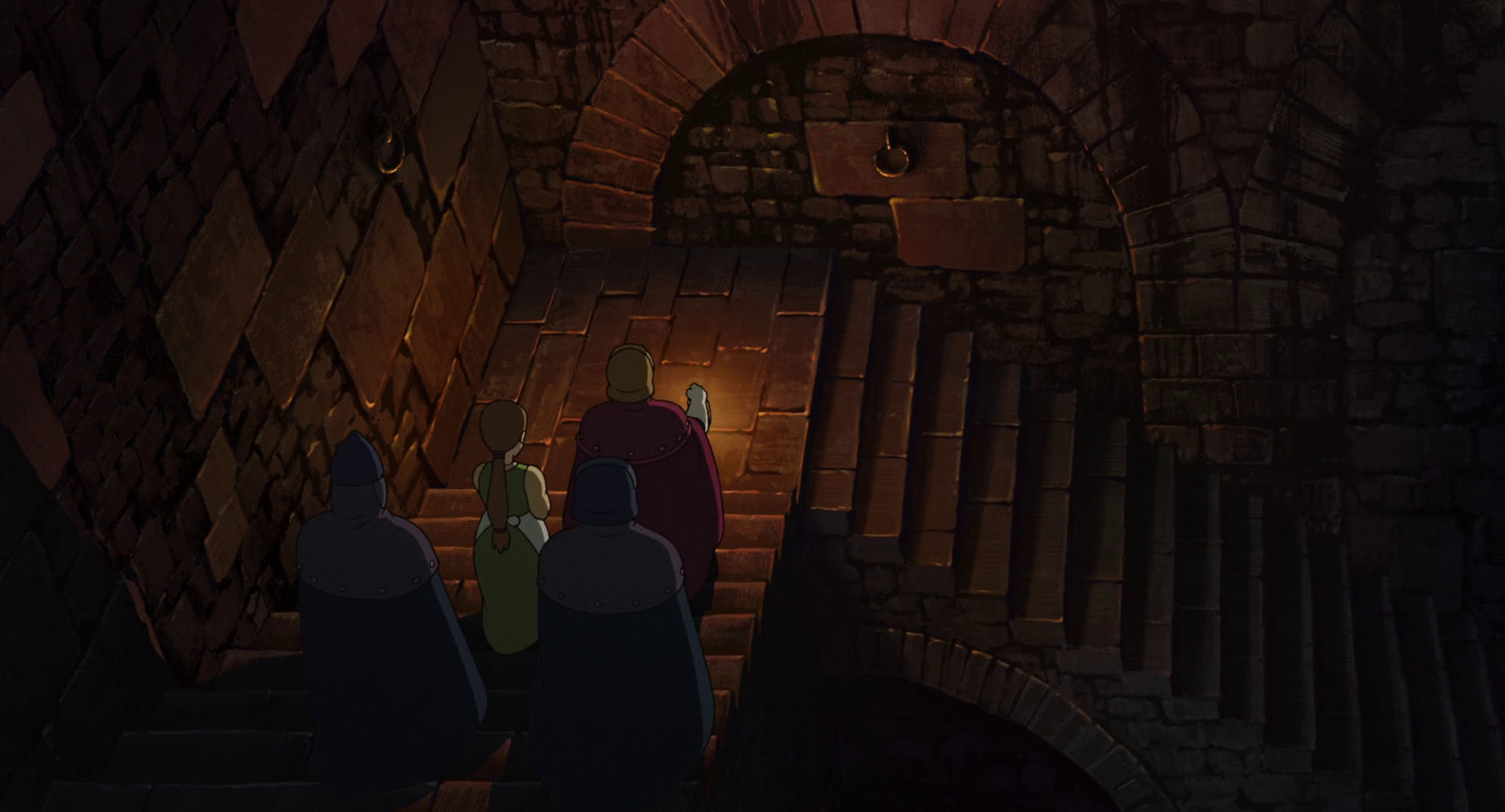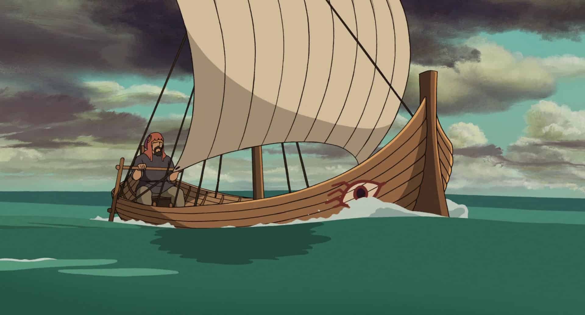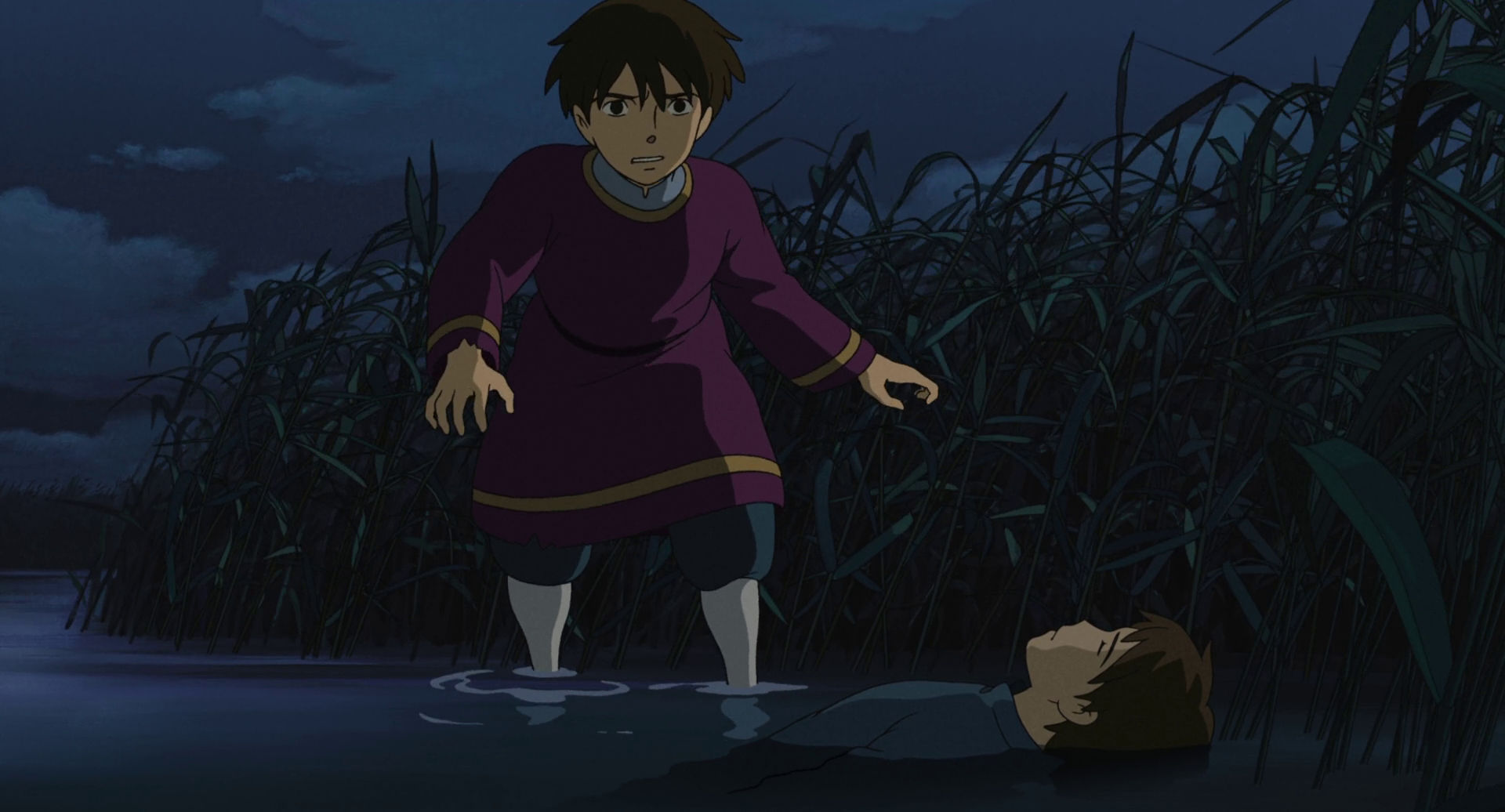 « Les Contes de Terremer » s’ouvre sur une scène sidérante : dans un château médiéval, le prince Arren poignarde son père, le roi, sans raison apparente. Cette ouverture brutale, absente des romans de Le Guin, représente l’ajout le plus controversé de Gorō. Arren s’enfuit, terrorisé par son propre geste, hanté par une ombre maléfique qu’il ne comprend pas. Dans la campagne désolée de Terremer, il rencontre Épervier (Ged en version originale), archimage vieillissant qui enquête sur un déséquilibre mystérieux affectant le monde : les dragons se battent entre eux, la magie s’affaiblit, les hommes succombent à la peur de la mort.
