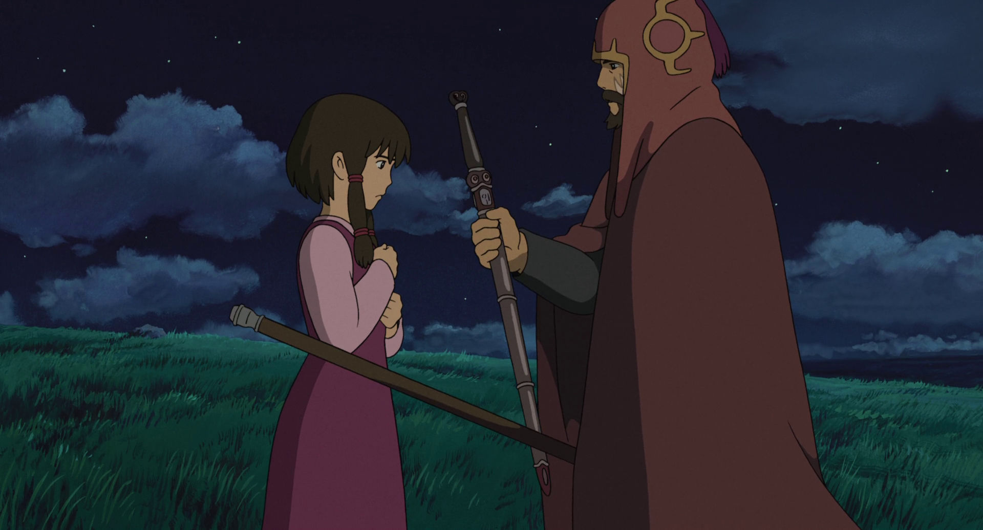 Le design sonore mérite également attention. Contrairement aux films de Hayao, souvent accompagnés de partitions orchestrales majestueuses (Joe Hisaishi), « Les Contes de Terremer » privilégie une approche plus discrète : sons ambiants (vent dans les hautes herbes, vagues lointaines, craquements de bois), silences expressifs, musique de Tamiya Terashima qui évite l’emphase. Cette sobriété, inhabituelle pour Ghibli, crée une atmosphère contemplative qui sied à la mélancolie du récit.